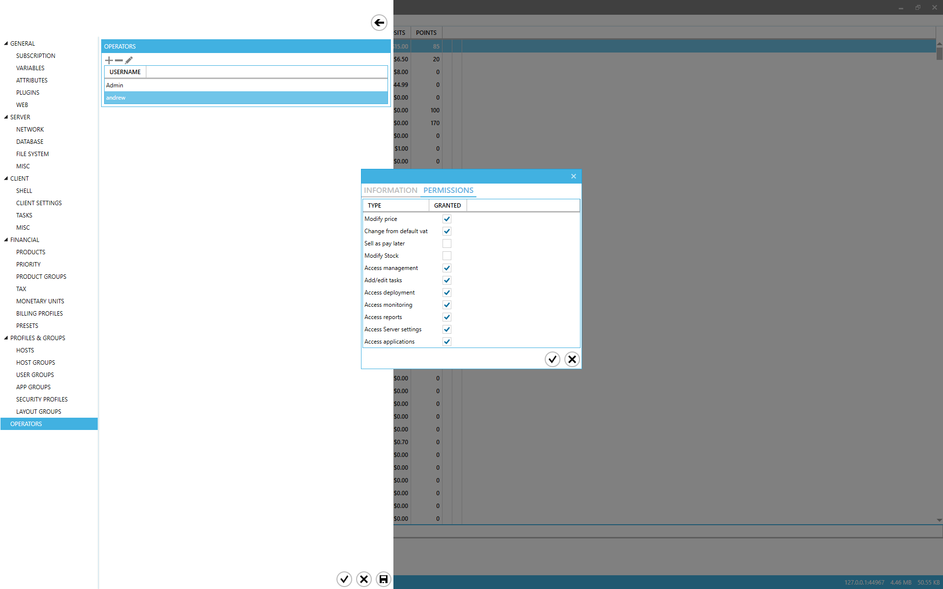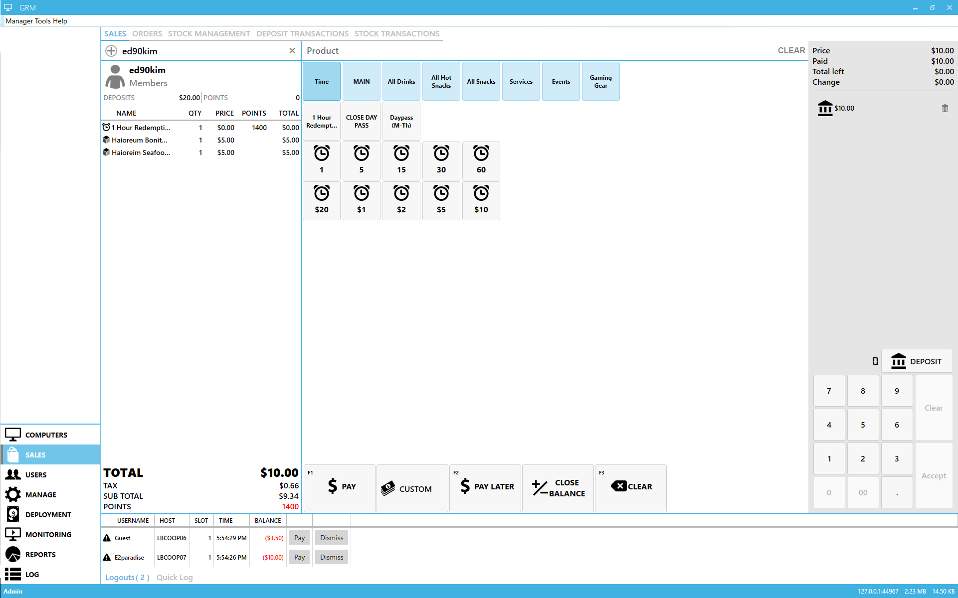 Fully customize and easily identify customers with detailed user profiles, including a customer photo, extended user information (e.g. user ID or Skype information), and even an in-store account to deposit and pay for purchases.